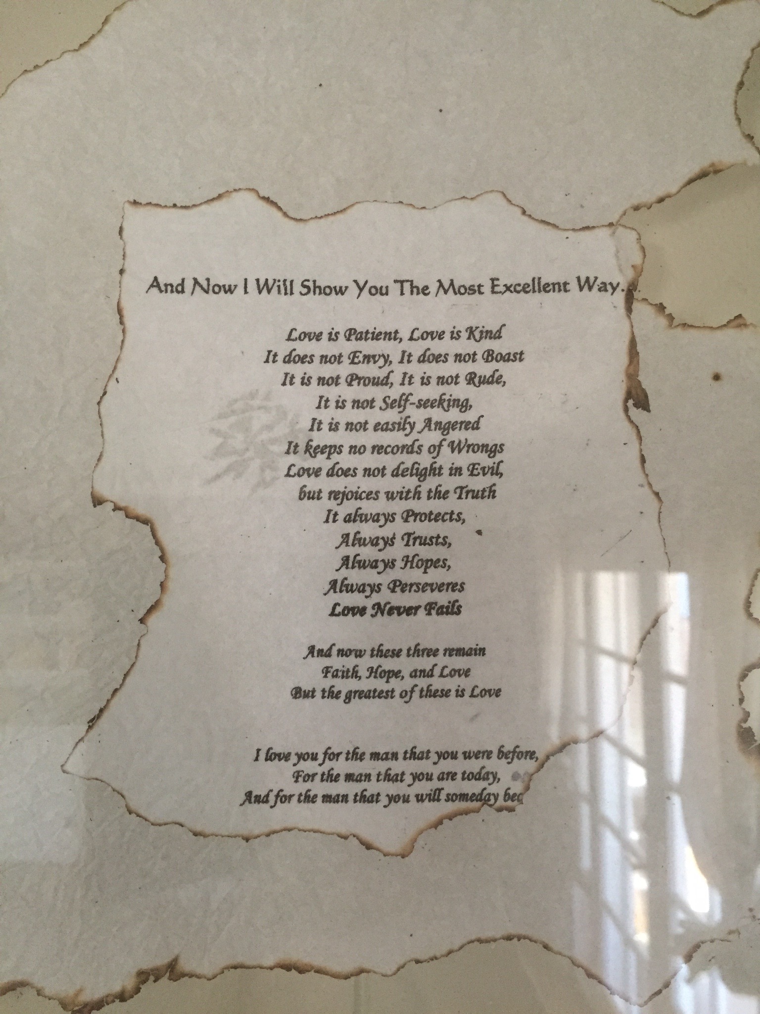 When Hector and I were dating I used to make most of his gifts. I’d like to believe that it was due to my creative nature and my heart for art, but I also know a good deal was because of money. One time i printed him a bible verse on a piece of tissue paper and mounted it in-between a clear floating frame. It still hangs on our wall today.